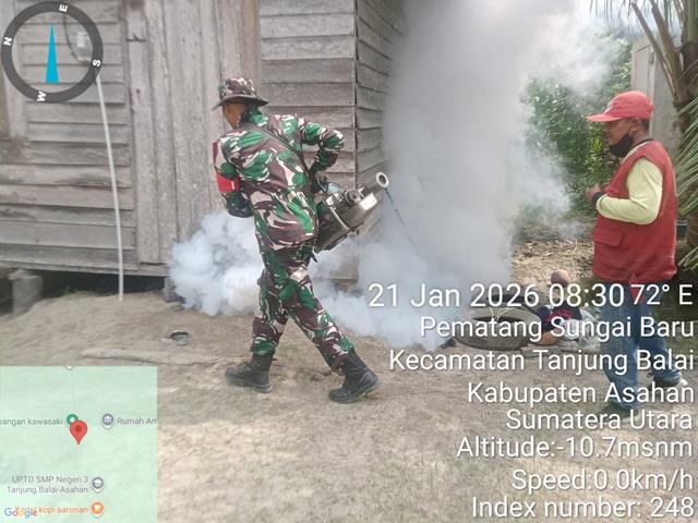 Kegiatan berlangsung dengan aman dan lancar serta mendapat respons positif dari masyarakat. Sinergi antara Babinsa dan tim Dinkes Kabupaten Asahan diharapkan dapat menekan penyebaran DBD serta menciptakan lingkungan yang sehat dan nyaman bagi warga, dalam kesempatan ini seperti yang dilakukan oleh Personel Bintara Pembina Desa (Babinsa) Koramil 08/Pulau Buaya jajaran Kodim 0208/Asahan Sertu Faisal Lubis turun kewilayah binaan untuk melaksanakan kegiatan Voging bersama Tim dari Dinkes Kabupaten Asahan yang telah terindikasi sakit Demam berdarah An.Putri usia 6 Tahun, adapun Tujuan dari foging untuk mengendalikan populasi nyamuk dewasa secara cepat, terutama untuk menekan penularan penyakit seperti Demam berdarah (DBD) atau malaria, bersama dengan Bapak Hamlet (Operator voging), Ibu Mawar (Kadus) dan Ibu Mely Amkeb (Staf Puskesmas), kegiatan tersebut yang dilaksanakan bertempat di Dusun VI Desa Pematang Sai Baru Kecamatan Tanjung Balai Kabupaten Asahan, Rabu (21/01/2026).