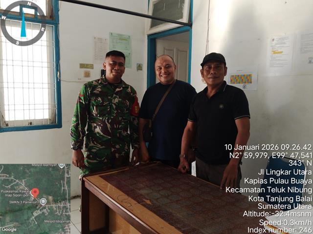 Dalam kesempatan ini seperti yang dilakukan oleh Personel Bintara Pembina Desa (Babinsa) Koramil 08/Pulau Buaya jajaran Kodim 0208/Asahan Kopda Agung Wijaya turun kewilayah binaan untuk melaksanakan kegiatan Puanter di Puskesmas, kegiatan puanter pendataan warga yang berobat di Puskesmas, kegiatan Puanter di Puskesmas Sipori-pori dalam rangka mendata Pelayanan kesehatan masyarakat sekaligus menyampaikan agar pihak puskesmas selalu memberikan pelayanan yang terbaik ke masyarakat sekitar, selain itu juga kegiatan ini bertujuan untuk menjalin hubungan silahturahmi antara Babinsa dengan petugas kesehatan yang ada di Puskesmas Sipori-pori, bersama dengan Bapak David (Perawat) dan Bapak Daniel (Perawat), kegiatan tersebut yang dilaksanakan bertempat di Puskesmas Jalan Lingkar Utara Kelurahan Kapias Pulau Buaya Kecamatan Teluk Nibung Kota Tanjung Balai, Sabtu (10/01/2026).