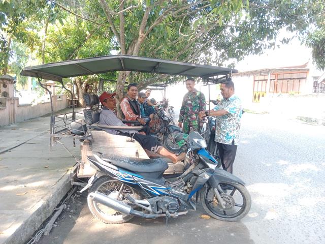 Kegiatan komsos dengan masyarakat menghimbau tentang Kamtibmas diwilayah agar tetap menjaga bersama dan melaporkan setiap kejadian yang ada diwilayah, pada pelaksanaan kegiatan tersebut Babinsa menunjukkan rasa kepeduliannya thd mitra karib dgn cara menyarankan kepada tukang becak agar melaksanakan antrian dalam menjemput penumpang yang akan turun dari bis antar lintas sumatra sehingga penumpang merasa nyaman dalam memilih becak dan terciptanya ketertiban di pangkalan becak, kegiatan Komsos dengan masyarakat penarik becak yang sedang menunggu sewa,dimana sulitnya perekonomian sehingga berpengaruh dengan pendapatan sehari-hari, Komsos dengan warga binaan yang berprofesi sebagai tukang Bentor dan menghimbau agar hati hati dalam berkendara, menghimbau agar pada saat membawa penumpang agar tetap mengutamakan keselamatan di jalan.
