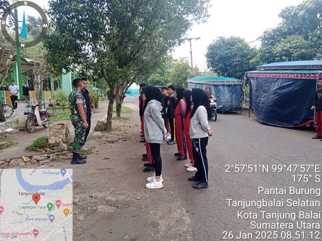 Tanjung Balai  |  Dalam rangka untuk membangun semangat juang generasi muda yang berwawasan pancasila untuk menyongsong masa depan yang berkualitas di era digital, dalam kesempatan ini seperti yang dilakukan oleh Personel Bintara Pembina Desa (Babinsa) Koramil 09/Tanjung Balai jajaran Kodim 0208/Asahan Serda Julmardiantoturun kewilayah binaan untuk melaksanakan kegiatan Wasbang, kegiatan Wanwil yakni pemberian wawasan kebangsaan kepada anak sekolah, kegiatan memberikan materi cinta tanah air,wawasan kebangsaan dan latihan dasar disiplin kepada siswa, giat Wasbang dengan generasi muda yang sedang melaksanakan giat olahraga dihari libur, menghimbau dan mengajak generasi muda agar selalu melaksanakan hal² yang bersifat positif selama libur sekolah sehingga bisa mencegah perbuatan yang dapat merugikan diri sendiri, kegiatan tersebut yang dilaksanakan bertempat di Stadion Asahan Sakti Jalan Pahlawan Kelurahan Pantai Burung Kecamatan Tanjung Balai Selatan Kota Tanjung Balai, Senin (27/01/2025).