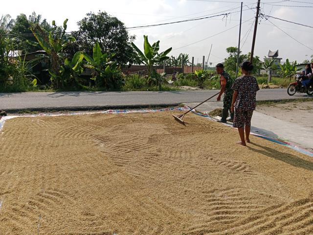 Personel Koramil 10/SK Kodim 0208/Asahan Bantu Petani Jemur Padi Untuk Tingkatkan Kualitas Hasil Panen