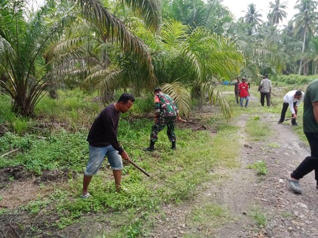 Personel Koramil 10/SK Kodim 0208/Asahan Bersama Masyarakat Gotong Royong Bersihkan Kiri Kanan Jalan Dan Parit