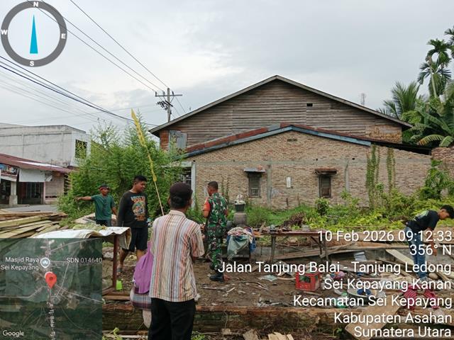 Kegiatan berlangsung dengan aman, tertib, dan penuh kekeluargaan. Melalui kebersamaan antara Babinsa dan masyarakat, diharapkan nilai gotong royong terus terpelihara serta memberikan manfaat bagi kesejahteraan warga di wilayah binaan, dalam kesempatan tersebut seperti halnya yang dilakukan oleh Personel Bintara Pembina Desa (Babinsa) Koramil 10/Sei Kepayang jajaran Kodim 0208/Asahan Koptu MD Sihombing turun kewilayah binaan untuk melaksanakan kegiatan Gotong royong membantu pembongkaran salah satu rumah warga karena sudah tidak lagi layak untuk menjadi tempat hunian bagi keluarga, kegiatan tersebut juga bertujuan untuk membangun tali silaturahmi yang semakin akrab antara Babinsa dengan warga desa binaan. Serta untuk meningkatkan hubungan yang semakin baik dan harmonis. Sehingga tugas Babinsa dapat tercapai dengan baik di wilayah Koramil 10/SK, bersama dengan Bapak Gunawan, Bapak Ikar, Bapak Sangkot dan Bapak Zulham, kegiatan tersebut yang dilaksanakan bertempat di Desa Sei Kepayang Kanan Kecamatan Sei Kepayang Kabupaten Asahan, Selasa (10/02/2026).