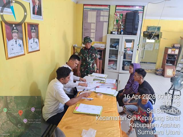 Untuk menindak lanjuti kegiatan tersebut dalam kesempatan ini kali ini seperti yang dilakukan oleh Personel Bintara Pembina Desa (Babinsa) Koramil 10/Sei Kepayang jajaran Kodim 0208/Asahan Serka Candra Adi Saputra turun kewilayah binaan untuk melaksanakan kegiatan Full Data Ter sekaligus Komsos, kegiatan Puldata Ter bersama Perangkat Desa dalam rangka membahas tentang kamtibmas, pengumpulan data GEO, DEMO, KONSOS, kegiatan ini bertujuan untuk memperoleh data terbaru yang di perlukan Babinsa meliputi data Geografi, Demografi dan Kondisi Sosial masyarakat di wilayah binaan, kegiatan Puldatater di Kantor Desa Sei Serindan untuk mendata Adminitrasi surat menyurat tanah masyarakat bersama Perangkat Desa dan Perwakilan ATR/BPN Kabupaten Asahan serta mengetahui pembaharuan data yang diperlukan dan juga mendata wilayah Desa Binaan, bersama dengan Bapak Bukhori Muslim, Bapak Augus Salim, Bapak Irwan, Bapak M Samsul dan Ibu Nuraini, kegiatan tersebut yang dilaksanakan bertempat di Kantor Desa Sei Serindan Dusun 2 Kecamatan Sei Kepayang Barat Kabupaten Asahan, Kamis (16/04/2026).