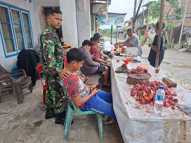 Asahan  |  Dalam rangka mempererat hubungan dengan warga binaan, Babinsa melaksanakan kegiatan komunikasi sosial (Komsos) bersama masyarakat yang sedang berbelanja daging untuk persiapan menyambut datangnya bulan suci Ramadhan. Kegiatan Komsos tersebut dimanfaatkan Babinsa untuk menjalin silaturahmi sekaligus berdialog langsung dengan warga mengenai situasi keamanan, ketertiban lingkungan, serta kebutuhan masyarakat menjelang pelaksanaan ibadah puasa. Suasana kebersamaan tampak hangat di tengah aktivitas jual beli yang berlangsung ramai. Babinsa menyampaikan imbauan kepada masyarakat agar tetap menjaga ketertiban, keamanan, serta saling menghormati selama bulan Ramadhan, sehingga tercipta suasana yang nyaman dan kondusif dalam menjalankan ibadah.