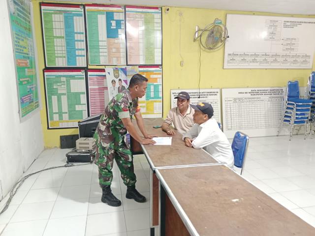 Asahan | Dalam rangka membicarakan tentang Pendataan Jumlah Penduduk yang baru pindah dan yang telah meninggal dunia untuk perbaharuan data, pada kesempatan tersebut Babinsa dapat mengetahui jumlah penduduk yang baru dan meninggal dunia di setiap Desa binaan, dalam kesempatan ini seperti yang dilakukan oleh Personel Bintara Pembina Desa (Babinsa) Koramil 10/Sei Kepayang jajaran Kodim 0208/Asahan Koptu MD Sihombing turun kewilayah binaan untuk melaksanakan kegiatan Pul Data Ter diwilayah di desa binaan, agar terjalin hubungan yang erat antara Babinsa dan perangkat desa, kegiatan Puldatater dengan perangkat Desa binaan yang bertujuan untuk mengetahui keadaan Desa binaan yang berkaitan dengan wilayah yang rawan bencana alam serta situasi dan kondisi Kamtibmas yang ada di desa binaan, bersama dengan Bapak Deni dan Bapak Zulkifli, kegiatan tersebut yang dilaksanakan bertempat di Kantor Desa Sei Kepayang Kanan Kecamatan Sei Kepayang Kabupaten Asahan, Kamis (13/11/2025).