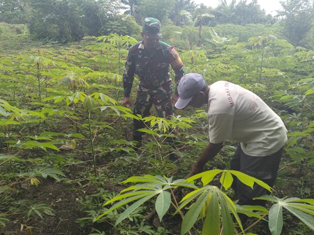Asahan  |  Dalam rangka kegiatan pendampingan ini dilakukan guna menciptakan keakraban dengan petani, serta bertujuan untuk mengatasi ketahanan pangan dan juga memberikan motivasi kepada para petani agar lebih giat lagi dalam bekerja dan merawat lahan pertaniannya, singkong merupakan salah satu tanaman pangan sumber karbohidrat selain jagung dan padi, budidaya tanaman ubi kayu juga untuk mewujudkan ketahanan pangan dimasyarakat, dalam kesempatan ini seperti yang dilakukan oleh Personel Bintara Pembina Desa (Babinsa) Koramil 13/Buntu Pane jajaran Kodim 0208/Asahan Koptu M Taupik Pane turun kewilayah desa binaan untuk melaksanakan kegiatan membantu warga yang sedang Bertani ubi dalam rangka mendukung Ketahanan Pangan sekaligus membantu Petani merawat dan membersihkan gulma tanaman Singkong, kegiatan di Kebun Ubi milik Bapak Sukimin  bertujuan untuk mendapingi warga binaan yg sedang melakukan perawatan tanaman Ubi Kayu dan memberikan motifasi kepada warga binaan agar selalu menjaga ketahanan pangan diwilayah Desa binaan serta mensosialisasikan program pemerintah, Babinsa selalu hadir ditengan-tengah masayarakat agar terjalin silahturahmi kepada masyarakat binaan, kegiatan tersebut yang dilaksanakan berlokasi di Dusun X Desa Prapat Janji Kecamatan Buntu Pane Kabupaten Asahan, Sabtu (13/12/2025).