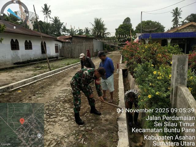 Asahan  |  Dalam rangka agar terjalinnya tali silaturahmi antara Babinsa dan masyarakat binaan, bersama masyarakat melaksanakan karya bhakti dengan gotong royong membersihkan kiri kanan jalan perkampungan warga, dalam kesempatan ini seperti yang dilakukan oleh Personel Bintara Pembina Desa (Babinsa) Koramil 13/Buntu Pane jajaran Kodim 0208/Asahan Serka Toni Suwandi turun kewilayah binaan untuk melaksanak gotong royong bersama dengan masyarakat, pembersihan kiri kanan Jalan, Gotong royong bersama masyarakat untuk membersihkan Kanan Kiri bahu jalan, gotong royong bersama warga binaan membersihkan rumput di badan jalan dan membersihkan parit, sebagai bentuk kepedulian Babinsa terhadap wilayah binaan guna dapat membaur ditengah tengah masyarakat serta memelihara komunikasi yang selama ini terjalin dengan baik, Bersama dengan Kades Sei Silau Timur Bapak Wartiman, Kadus ll B Bapak Wanda dan Masyaraka Dusun ll B, kegiatan tersebut yang dilaksanakan bertempat di Dusun ll B Desa Sei Silau Timur Kecamatan Buntu Pane Kabupaten Asahan, Selasa (04/11/2025).