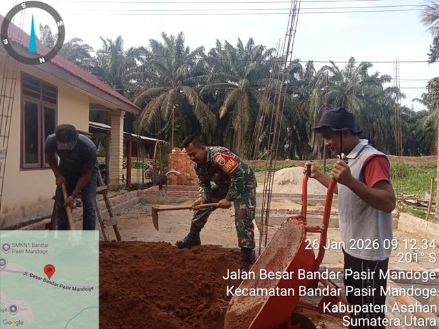 Asahan  |  Dalam rangka untuk memelihara dan menjalin hubungan baik Antara Babinsa dengn masyarakat, untuk meningkatkan rasa kepedulian terhadap masyarakat pada umumnya, guna meningkatkan kesejahteraan dan membangun keharmonisan dengan warga binaan, dalam kesempatan yang baik ini seperti halnya yang dilakukan oleh Personel Bintara Pembina Desa (Babinsa) Koramil 14/Bandar Pasir Mandoge jajaran Kodim 0208/Asahan Kopda Suyanto turun kewilayah binaan untuk melaksanakan kegiatan membantu pembangunan rumah warga desa yang kurang mampu, ini merupakan salah satu bentuk untuk menjalin kedekatan dan kebersamaan TNI dengan warga, dengan melaksanakan kegiatan gotong royong bersama warga membantu pengerjaan pembuatan rumah salah satu warga desa binaan, kegiatan gotong royong membantu warga yang sedang membangun Rumah. Kegiatan bertujuan untuk menjalin kerjasama yang baik antara Babinsa dengan Warga sehingga TNI selalu di hati Rakyat sekaligus menunjang tugas tugas Pokok TNI kedepannya dalam penerapan 8 wajib TNI, bersama dengan Bapak Ade Sitorus dan Bapak Ilham, kegiatan tersebut yang dilaksanakan bertempat di Dusun VIII Desa Bandar Pasir Mandoge Kecamatan Bandar Pasir Mandoge Kabupaten Asahan, Senin (26/01/2026).