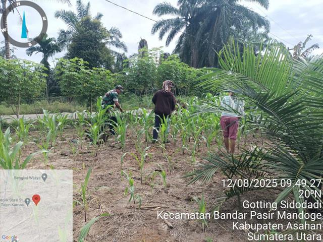 Dalam rangka untuk memupuk tanaman jagung, dalam kesempatan ini seperti yang dilakukan oleh Personel Bintara Pembina Desa (Babinsa) Koramil 14/Bandar Pasir Mandoge jajaran Kodim 0208/Asahan Sertu Sudarman turun kewilayah binaan untuk melaksanakan kegiatan Komunikasi Sosial (Komsos) sekaligus membantu warga masyarakat binaan melaksanakan Pendampingan Hampang Jenis Tanaman Jagung Pioneer, kegiatan ini bertujuan untuk membersihkan lahan dan Pemberian Pupuk pada Tanaman Jagung Pioneer agar dapat meningkatkan produksi dan mengurangi hama pada tanaman Jagung Pioneer tersebut, pendampingan ketahanan pangan (Hanpang) jenis tanaman Jagung Pioner untuk selalu dirawat dalam pemupukan dan membersihkan tanaman agar menghasilkan buah lebih produktif dan menguntungkan produksinya. Kegiatan ini merupakan kerjasama antara Babinsa dengan masyarakat sehingga tercipta hubungan yang baik, bersama dengan Ibu Rosmita Br Sihahan dan Ibu Renti Br Sinaga, kegiatan tersebut yang dilakukan bertempat di Dusun Vll Desa Bandar Pasir Mandoge Kecamatan Bandar Pasir Mandoge Kabupaten Asahan, Selasa (12/08/2025).
