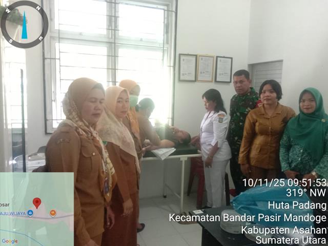 Asahan  |  Dalam hal ini Tim dokter dari Program Bakti Kesehatan Bermartabat Sumatera Utara (BKB Sumut) melanjutkan pelayanan kesehatan keliling, kali ini warga Kabupaten Asahan mendapat giliran untuk memperoleh pelayanan kesehatan gratis, dalam kesempatan ini seperti yang dilakukan oleh Personel Bintara Pembina Desa (Babinsa) Koramil 14/Bandar Pasir Mandoge jajaran Kodim 0208/Asahan Sertu Joni Tanjung turun kewilayah banana untuk melaksanakan kegiatan pendampingan pelayanan KB Kesehatan guna mendukung dalam rangka mensukseskan pelaksanaan pelayanan KB kegiatan Bulan Bhakti TNI Manunggal KB Kesehatan Tahun 2025, dengan melaksanakan pendampingan KB Kes dalam rangka Bulan Bakti Sosial PKK KB Kesehatan Thn 2025, Bersama dengan KTU Puskesmas Huta Padang Ibu Fitri Marpaung, Staf Puskesmas dan Bidan Desa Huta Padang serta Masyarakat peserta KB Kes, kegiatan tersebut yang dilaksanakan bertempat di Puskesmas Huta Padang Dusun III Desa Huta Padang Kecamatan Bandar Pasir Mandoge Kabupaten Asahan, Senin (10/11/2025).