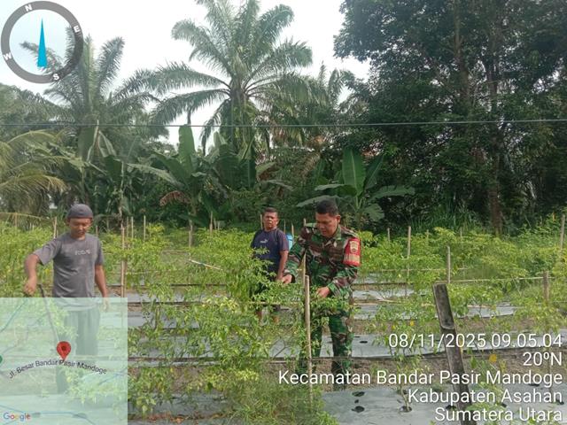 Asahan  |  Dalam rangka musim kemarau yang sudah hampir memasuki tiga bulan membuat petani cabe rawit Desa khawatir dan was-was jikalau hujan tak kunjung turun, dalam kesempatan ini seperti yang dilakukan oleh Personel Bintara Pembina Desa (Babinsa) Koramil 14/Bandar Pasir Mandoge jajaran Kodim 0208/Asahan Sertu Joni Tanjung turun kewilayah binaan untuk melaksanakan kegiatan Komunikasi Sosial (Komsos) bersama dengan Petani Cabe sekaligus membantu Panen Cabe, bersama masyarakat melaksanakan pendampingan ketahanan pangan (Hanpang) jenis tanaman Cabe Rawit membantu memanen untuk dijual ke pasar, kegiatan ini dilaksanakan bertujuan untuk terjalin Sinergritas antara Babinsa dengan warga binaannya sehingga TNI semakin dicintai Rakyat, bersama dengan Bapak Mondo Manurung dan Bapak Rendi Manurung, kegiatan tersebut yang dilaksanakan bertempat di Dusun IX Desa Huta Padang Kecamatan Bandar Pasir Mandoge Kabupaten Asahan, Sabtu (08/11/2025).