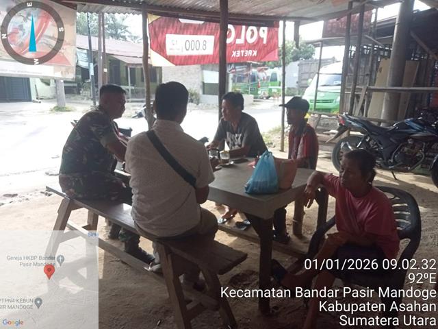 Asahan  |  Para Babinsa melaksanakan Komsos dalam rangka menjaga hubungan yang harmonis dengan masyarakat diwilayah binaan dengan melakukan kegiatan Komunikasi Sosial bersama warga Desa, Komsos ini dilakukan sebagai upaya mempererat tali silaturahmi serta meningkatkan kedekatan antara TNI dengan masyarakat di wilayah binaan, melalui kegiatan tersebut Babinsa dapat mengetahui perkembangan situasi wilayah sekaligus menyerap aspirasi dan kebutuhan warga, dalam kesempatan ini seperti yang dilakukan oleh Bintara Pembina Desa (Babinsa) Koramil 14/Bandar Pasir Mandoge jajaran Kodim 0208/Asahan Kopda Suyanto turun kewilayah binaan untuk melaksanakan kegiatan Komunikasi Sosial (Komsos) bersama dengan warga masyarakat di Wilayah desa binaan, Komsos membahas tentang situasi pasca menyambut Tahun Baru dimana situasi aman dan kondusif dan diharapkan di Tahun ini perekonomian  masyarakat meningkat lebih baik dan tetap juga terjaga keamanan dan ketertiban, kegiatan ini dilaksanakan guna membangun kebersamaan sehingga TNI selalu dicintai Rakyat, Bersama dengan Bapak Ramli Sitorus, Bapak Dison Sinurat dan Bapak L Situmorang, kegiatan tersebut yang dilaksanakan bertempat di Dusun I Desa Sei Kopas Kecamatan Bandar Pasir Mandoge Kabupaten Asahan, Kamis (01/01/2026).