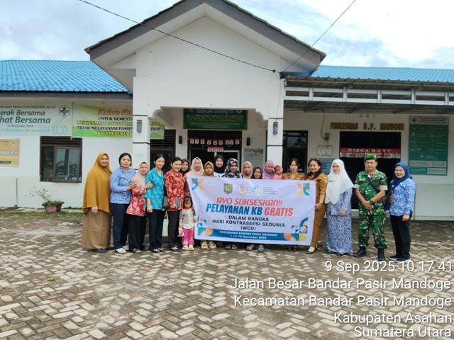 Asahan | Dalam rangka pendampingan dilakukan untuk mendukung program pemerintah dalam mensukseskan program Keluarga Berencana (KB) yang merujuk dari kerjasama antara TNI AD dan BKKBN, bahwa TNI memiliki kewajiban turut membantu dalam hal membatasi laju pertumbuhan penduduk yang sangat tinggi, “Hal ini juga wujud sinergitas antara aparat kewilayahan dengan petugas KB, dalam hal ini seperti yang dilakukan oleh Personel Bintara Pembina Desa (Babinsa) Koramil 14/Bandar Pasir Mandoge jajaran Kodim 0208/Asahan Pelda Junaidi turun kewilayah binaan untuk melaksanakan kegiatan membantu pelaksanaan program pelayanan KB kegiatan Bulan Bhakti TNI Manunggal KB Kesehatan Tahun 2025, dengan melaksanakan Pendampingan Pelayanan KB Kes dalam Rangka World Contraception Day (WDC) Tahun 2025, sekaligus mempererat tali silaturahmi dengan warga masyarakat, kegiatan tersebut yang dilaksanakan bertempat di Puskesmas Bandar Pasir Mandoge Kabupaten Asahan, Selasa (09/09/2025).