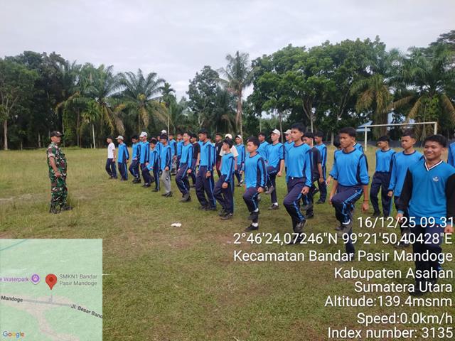 Asahan  |  Dalam rangka untuk membentuk sikap, kedisplinan, kekompakan, loyalitas dan kepedulian, rasa persatuan dan rasa tanggung jawab sejak dini adalah bagian dari bentuk keperdulian para Babinsa dengan memberikan pelatihan dasar Peraturan Baris Berbaris, dalam kesempatan ini seperti yang dilakukan oleh Personel Bintara Pembina Desa (Babinsa) Koramil 14/Bandar Pasir Mandoge jajaran Kodim 0208/Asahan Serka L Siringo ringo turun kewilayah binaan untuk melaksanakan kegiatan memberikan pelatihan kepada siswa dengan memberikan pelatihan PBB (peraturan baris berbaris) kepada Siswa siswi yang ada diwilayah binaan, Latihan Baris Berbaris kepada Siswa/i SMK N 1 Bandar Pasir Mandoge bertempat dusun V Desa Bandar Pasir  Mandoge. Adapun tujuan Latihan baris berbaris ini untuk menumbuhkan disiplin Siswa /i dan membentuk jiwa korsa mereka, bersama dengan Bapak Kepala Sekolah dan Bapak Siswa/i SMK N1, kegiatan tersebut yang dilaksanakan bertempat di Lapangan SMK N 1 Desa Bandar Pasir Mandoge Kecamatan Bandar Pasir Mandoge Kabupaten Asahan, Selasa (16/02/2025).