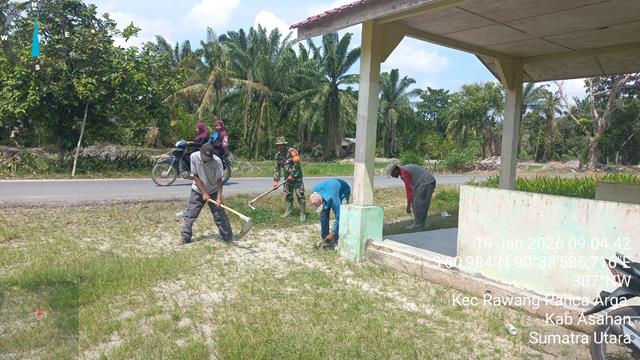 Asahan | Kegiatan Gotong-royong bersama Lurah, Kepling dan warga membersihkan lingkungan, rumput dan sampah di kanan kiri jalan utama, untuk menciptakan dan menjaga lingkungan agar tetap bersih, nyaman dan asri, sehingga terciptanya lingkungan yang bersih dan sehat, tujuan dari Gotong-royong pembersihan parit tiada lain untuk memperlancar aliran air agar tidak terjadi banjir pada saat hujan tiba sekaligus membersihkan lingkungan termasuk dengan kiri kanan jalan diwilayah binaan, dalam kesempatan tersebut seperti hal yang dilakukan oleh Personel Bintara Pembina Desa (Babinsa) Koramil 18/Meranti jajaran Kodim 0208/Asahan Sertu Irawiyadi turun kewilayah untuk melaksanakan kegiatan Gotong Royong dalam rangka membersihkan lingkungan kiri kanan jalan dan parit, kegiatan Gotong Royong Membantu membersihkan lingkungan desa supaya rapi dan bersih bersama warga Bapak Saiman, Bapak Yusri dan Bapak Amran, kegiatan tersebut yang dilaksanakan bertempat di Desa Panca Arga Kecamatan Rawang Panca Arga Kabupaten Asahan, Senin (19/01/2026).