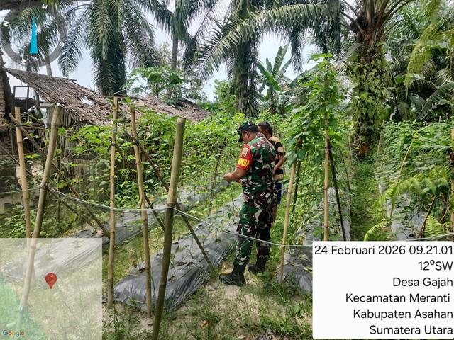 Dalam rangka untuk mensukseskan serta untuk meningkatkan Bahan Pangan untuk Masyarakat serta untuk menjalin komunikasi yang baik antar TNI dengan masyarakat, dalam kesempatan ini seperti yang dilakukan oleh Personel Bintara Pembina Desa (Babinsa) Koramil 18/Meranti jajaran Kodim 0208/Asahan Sertu Samuel Satya Praja Sihombing turun kewilayah binaan untuk melaskanakan kegiatan melaksanakan Pendataan di kebun kacang Panjang, dengan melaksanakan Wanwil dengan petani warga Petani, adapun maksud dan tujuan, untuk membantu petani membersihkan rumput di bedengan pada tanaman kacang panjang agar bersih dan terhindar dari Hama dan Gulma, dalam kesempatan tersebut Babinsa juga memberi masukan kepada petani agar lebih giat dan berinovasi dalam bidang pertanian supaya mendapatkan hasil yang baik, bersama dengan Bapak K Sitorus (warga Dusun VllI), kegiatan tersebut yang dilaksanakan bertempat di Dusun VllI Desa Gajah Kecamatan Meranti Kabupaten Asahan, Selasa (24/02/2026).