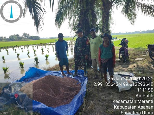 Kegiatan berlangsung dengan aman dan penuh keakraban. Dengan adanya Komsos ini, diharapkan terjalin kerja sama yang semakin erat antara Babinsa dan petani dalam mendukung kemajuan pertanian di wilayah desa binaan, dalam kesempatan ini seperti yang dilakukan oleh Personel Bintara Pembina Desa (Babinsa) Koramil 18/Meranti jajaran Kodim 0208/Asahan Kopda Rahmat Saleh turun kewilayah binaan untuk melaksanakan kegiatan Komunikasi Sosial (Komsos) dengan petani yang akan melakukan pemupukan sawah pada tahap pertama pada awal penanaman padi, kegiatan tersebut bertujuan untuk memberikan semangat dan Motivasi kepada petani agar lebih berinovasi sehingga mendapatkan hasil yang lebih baik lagi, bersama dengan Bapak Sundari (Petani), Bapak Yamin (Petani) dan Ibu Juliani (Petani), kegiatan tersebut yang dilaksanakan bertempat di Desa Air Putih Kecamatan Meranti Kabupaten Asahan, Minggu (25/01/2026).