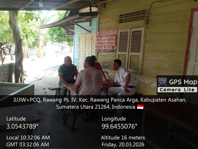 Komunikasi Sosial (Komsos) adalah salah satu media Babinsa untuk mengenal warga binaannya lebih dekat lagi dan sebagai sarana silaturahmi agar lebih dekat dan akrab, dalam kesempatan ini seperti yang dilakukan oleh Personel Bintara Pembina Desa (Babinsa) Koramil 18/Meranti jajaran Kodim 0208/Asahan Serka Beslin Silalahi turun kewilayah binaan untuk melaksanakan kegiatan Komunikasi Sosial (Komsos) bersama dengan warga desa binaan, adapun maksud dan tujuan untuk menciptakan hubungan yang humanis antara Babinsa dengan warga binaan, kegiatan Komsos dengan warga Bapak Yanto, Bapak Tugimin dan Bapak Rohman, kegiatan tersebut yang dilaksanakan bertempat di Desa Rawang Pasar IV Kecamatan Rawang Panca Arga Kabupaten Asahan, Jumat (20/03/2026).