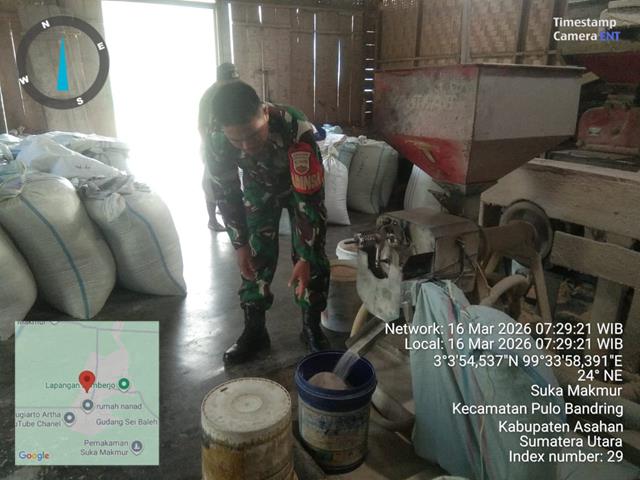 Asahan  |  Dalam rangka mempererat hubungan dengan masyarakat serta pelaku usaha di wilayah binaan, Babinsa melaksanakan kegiatan komunikasi sosial (Komsos) bersama masyarakat dan pengusaha gilingan padi. Kegiatan tersebut dilakukan dengan berdialog secara langsung mengenai kondisi usaha penggilingan padi, ketersediaan gabah dari para petani, serta proses pengolahan gabah menjadi beras yang menjadi kebutuhan pokok masyarakat. Melalui kegiatan ini, Babinsa juga memperoleh informasi terkait kendala yang dihadapi para pengusaha maupun petani dalam menjalankan usaha mereka. Babinsa menyampaikan bahwa keberadaan usaha gilingan padi memiliki peran penting dalam mendukung ketahanan pangan serta membantu meningkatkan perekonomian masyarakat, khususnya bagi para petani di wilayah tersebut.