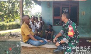Asahan | Melalui rutinitas di wilayah, para Babinsa selalu aktif menjalin Komsos bersama seluruh lapisan masyarakat, baik dengan tokoh agama, tokoh masyarakat, tokoh pemuda, tokoh adat serta seluruh elemen masyarakat lainnya, hal tersebut dilakukannya, guna menjalin sinergitas dan mewujudkan kemanunggalan TNI dengan Rakyat. Kegiatan Komunikasi Sosial yang dilakukan oleh Babinsa, juga sebagai sarana memonitoring perkembangan situasi di desa binaannya.