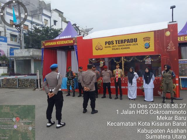 Asahan | Dalam rangka untuk tertibkan keamanan wilayah, dalam kesempatan ini seperti yang dilakukan oleh Personel Bintara Pembiona Desa (Babinsa) Koramil 18/Meranti jajaran Kodim 0208/Asahan Koptu Julianto turut serta melaksanakan kegiatan Apel Gabungan kegiatan Pos Pam Nataru Terpadu, kegiatan Pos PAM Nataru di Wilayah Koramil 18/Meranti, kegiatan tersebut yang dilaksanakan bertempat di Pos PAM Nataru Terpadu Jalan Hos Cokroaminoto Mekar Baru Kecamatan Kota Kisaran Barat Kabupaten Asahan, Selasa (30/12/2025).