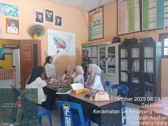 Dalam rangka membicarakan tentang Pendataan Jumlah Penduduk yang baru pindah dan yang telah meninggal dunia untuk perbaharuan data, pada kesempatan tersebut Babinsa dapat mengetahui jumlah penduduk yang baru dan meninggal dunia di setiap Desa binaan, dalam kesempatan ini seperti yang dilakukan oleh Personel Bintara Pembina Desa (Babinsa) Koramil 10/Sei Kepayang jajaran Kodim 0208/Asahan Serka Hendra Yusuf Nasution turun kewilayah binaan untuk melaksanakan kegiatan Pul Data Ter diwilayah di desa binaan, agar terjalin hubungan yang erat antara Babinsa dan perangkat desa, Kegiatan bertujuan untuk menghimpun dan mendata wilayah di desa yg rawan bencana alam, rawan ganguan keamanan serta selalu menjalin hubungan yang baik dan harmonis antara perangkat desa dengan Babinsa dan agar tugas Babinsa dapat tercapai dengan baik di wilayah Koramil 10/SK, bersama dengan Ibu Masnah, Ibu Nila, Ibu Tumini dan Ibu Icha dengan perangkat desa, kegiatan tersebut yang dilaksanakan bertempat di Kantor Desa Sei Lunang Kecamatan Sei Kepayang Timur Kabupaten Asahan, Rabu (Kamis (09/10/2025).