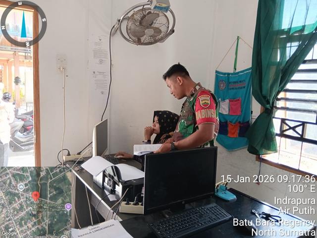 Batu Bara | Dengan aktif melaksanakan kegiatan ini diyakini mampu meningkatkan kerjasama dengan Perangkat Desa binaan guna menjaga keamanan dan ketentraman dimasyarakat, dalam rangka untuk mensukseskan tugas-tugas pemerintah yang ada diwilayah binaan serta meperbaharui data kewilayahan, dalam kesempatan ini seperti yang dilakukan oleh Personel Bintara Pembina Desa (Babinsa) Koramil 02/Air Batu jajaran Kodim 0208/Asahan Serda Hardianto turun kewilayah desa binaan untuk melaksanakan kegiatan Pul Data Ter sekaligus melaksanakan kegiatan Anjangsana dengan perangkat Kelurahan, dengan melaksanakan kegiatan mendata Geo, Demo dan Konsos, bersama dengan Ibu Weny (Operator Kelurahan), kegiatan tersebut yang dilaksanakan bertempat di Kelurahan Indrasakti Kecamatan Air Putih Kabupaten Batu Bara, Kamis (15/01/2026).