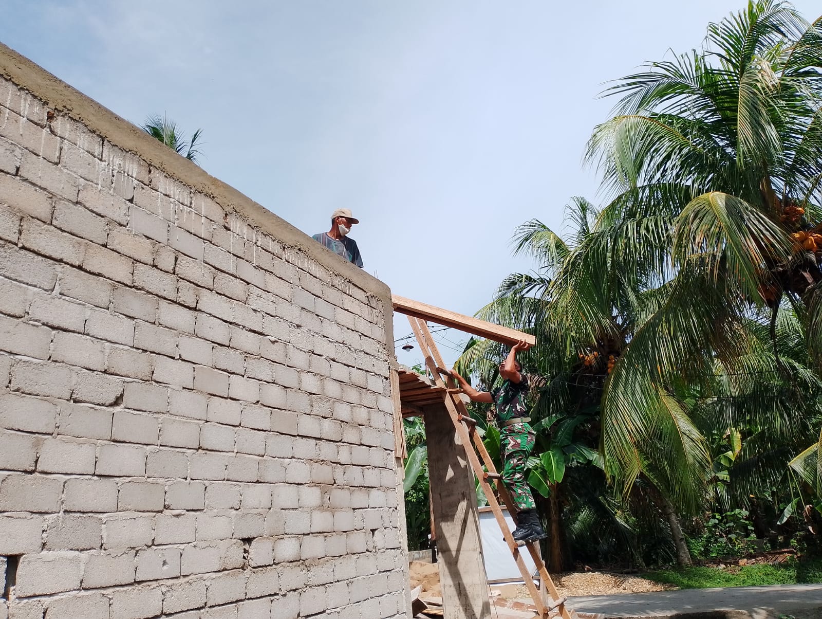 Renovasi RTLH TMMD Kodim 0302/Inhu Memasuki Tahap Pemasangan Kuda-kuda Rumah