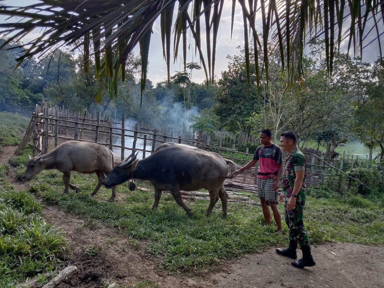 Disela-sela kegiatannya sebagai aparat Teritorial,Babinsa Koramil 08/KM Kodim 0302/Inhu sambangi warga yang memiliki ternak kerbau di wilayah desa binaannya masing masing.Contohnya Serda Ari Waluyo yang menyambangi peternak kerbau milik warga binaan Di Desa Pulau rumput Kecamatan Gunung Toar Kabupaten Kuantan Singingi dengan memberikan semangat dan mengajak peternak untuk menyampaikan semua keluhan,contohnya tentang segala kebutuhan nanti waktu di kandang sehingga ternak tersebut dapat dipelihara dengan baik dan sehat serta bisa terhindar dari wabah PMK. Jumat ( 19/12/2025 ).