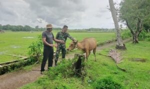 Danramil Mengatakan “Melalui kegiatan yang dilakukan secara rutin ini, akan tercipta sinergitas antara Babinsa dan warga, sehingga dapat mempererat hubungan antara TNI dan Masyarakat serta dapat menekan penularan PMK terhadap ternak milik warga” Ujarnya.