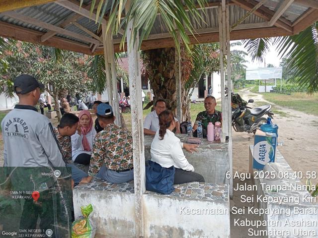 Asahan | Dalam rangka melaskanakan kegiatan komunikasi sosial bertujuan untuk mempererat tali silaturahmi, dan kerjasama yang erat dalam rangka mewujudkan kemanunggalan serta mengetahui situasi dan kondisi Pendidikan yang ada diwilayah binaan, dalam kesempatan ini seperti yang dilakukan oleh Personel Bintara Pembina Desa (Babinsa) Koramil 10/Sei Kepayang jajaran Kodim 0208/Asahan Serka JH Lubis turun kewilayah binaan untuk melaksanakan kegiatan Komunikasi Sosial (Komsos) bersama dengan Dewan Guru dan siswa SMA Negeri 1 Sei Kepayang, kegiatan tersebut bertujuan untuk meningkatkan hubungan talisilaturrahmi dan komunikasi yang baik dan harmonis serta kekeluargaan sehingga dapat terciptanya kemanunggalan TNI dengan Para Guru, bersama dengan Bapak M Reza SPD M HUM, Ibu Risma SPD MM, Ibu Zainab Margolang Spd, Bapak Badlan SPDI MPD dan Siswa SMA Negeri 1 Sei Kepayang, kegiatan Komunikasi Sosial tersebut yang dilaksanakan bertempat di SMA Negeri 1 Sei Kepayang Desa Sei Kepayang Kiri Kecamatan Sei Kepayang Barat Kabupaten Asahan, Rabu (06/08/2025).
