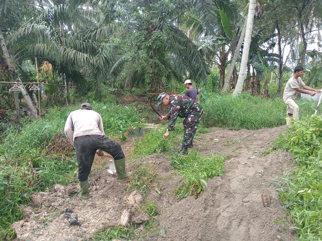 Semangat Karya Bakti, Personel Koramil 10/SK Kodim 0208/Asahan Bangun Parit Bersama Warga