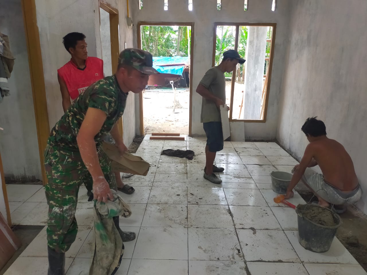 Digesah oleh Satuan Tugas (Satgas) TNI Manunggal Membangun Desa (TMMD) ke-127 Kodim 0302/INHU yakni dengan melanjutkan menggarap sasaran fisik pembangunan Rumah Tidak Layak Huni (RTLH) milik Bapak Hamidan yang saat ini melanjutkan pekerjaan pemasangan Keramik, Pemasangan Kloset dan ngecat dinding luar rtlh.