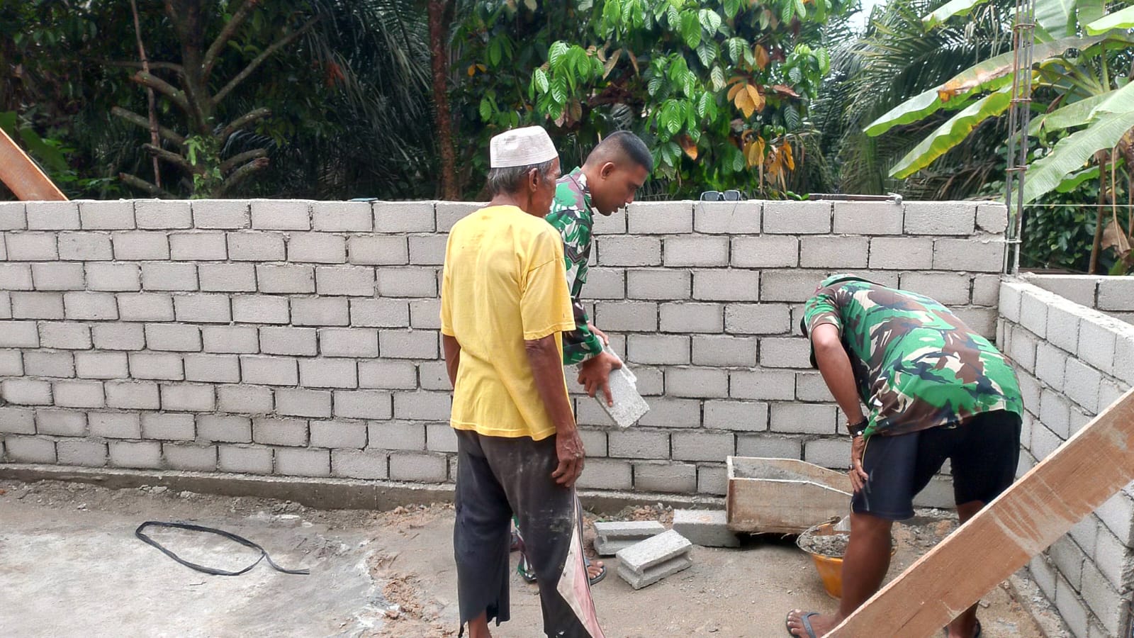 Anggota Satgas TMMD Ke-127 yang terdiri dari para babinsa gabungan Koramil Koramil di bawah naungan Kodim 0302/Inhu yang dibantu warga sekitar, dengan sigap serta kerja keras untuk mewujudkan hunian yang layak bagi Bapak Mazrizal.