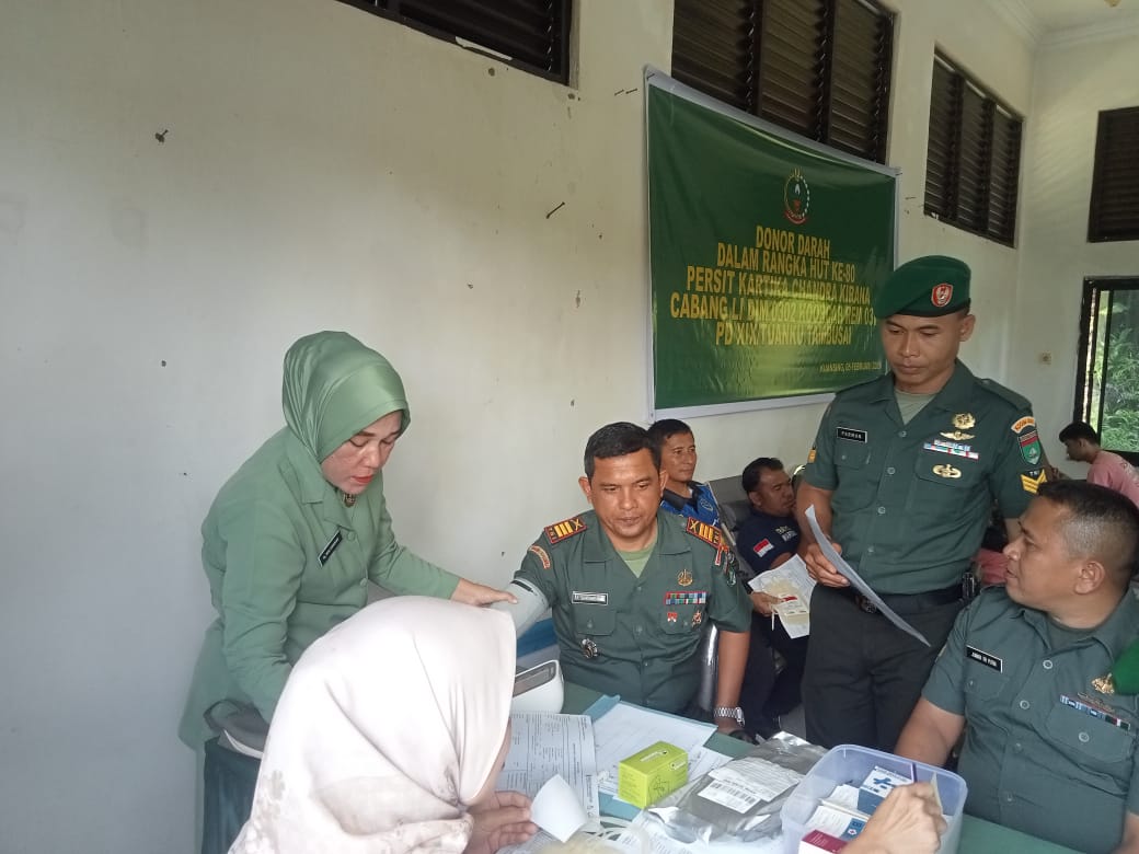 Kegiatan donor darah ini merupakan salah satu rangkaian peringatan HUT ke-80 Persit KCK, bertujuan membantu ketersediaan stok darah sekaligus memberikan manfaat langsung bagi masyarakat yang membutuhkan. Kegiatan dilaksanakan bekerja sama dengan UTD RS Teluk Kuantan Kab. Kuansing dan berlangsung tertib, aman, dan lancar.