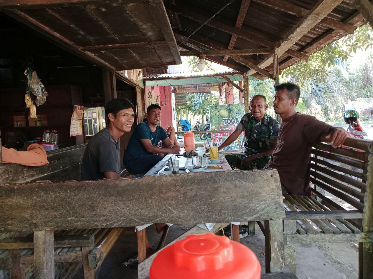 Serap Informasi Sambil Ngopi Bersama Warga, Babinsa komsos di warung kopi