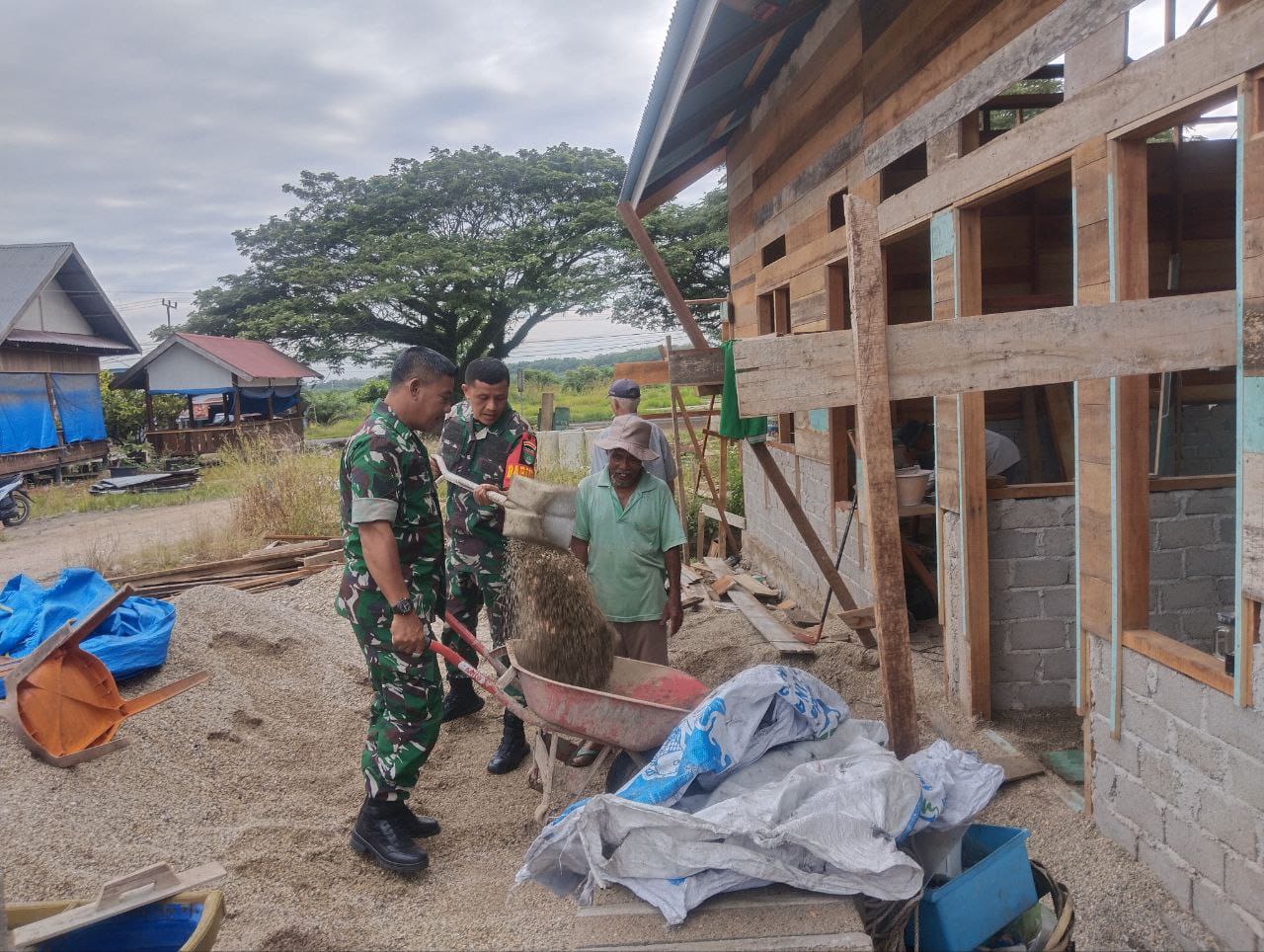 Sinergi TNI Bersama Rakyat, Babinsa Bantu Bangun Rumah Warga