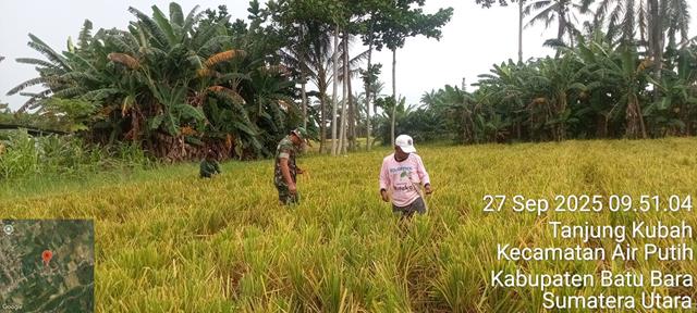 Dalam rangka untuk menjalin kemanunggalan TNI dengan Rakyat, kehadiran Babinsa di tengah masyarakat dan terjun langsung ke sawah menunjukkan kedekatan dan kemanunggalan antara TNI dengan Rakyat, dengan memberikan Motivasi dan Semangat, dalam kesempatan ini seperti yang dilakukan oleh Personel Bintara Pembina Desa (Babinsa) Koramil 02/Air Putih jajaran Kodim 0208/Asahan Praka Erwinsyah turun kewilayah binaan untuk melaksanakan kegiatan Ketahanan Pangan membantu petani panen Padi dan sekaligus mengutip padi sisa panen, kegiatan dilaksanakan di sawah milik Bapak Juanda seluas 7 rante, kegiatan tersebut yang dilakukan bertempat di Desa Tanjung Kubah Kecamatan Air Putih Kabupaten Batu Bara, Sabtu (27/09/2025).
