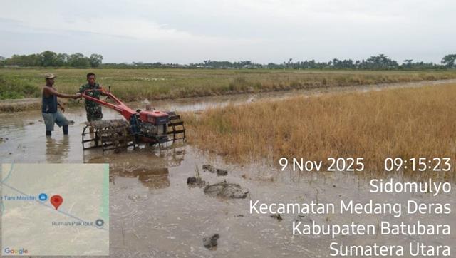 Dalam kesempatan ini seperti yang dilakukan oleh Personel Bintara Pembina Desa (Babinsa) Koramil 01/Medang Deras jajaran Kodim 0208/Asahan Sertu Miswanto turun kewilayah desa binaan untuk melaksanakan kegiatan membantu petani memotong/babat sisa jerami untuk mempermudah pengerjaan mengolah sawah pada musim tanam, kegiatan pendampingan petani untuk membantu olah tanah menggunakan Jetor dilahan Bapak Mahmud, dengan tujuan mempercepat masa tanam serentak guna mendukung program pemerintah agar Tercapainya Swasembada pangan, bersama dengan Bapak Rosidi, kegiatan tersebut yang dilaksanakan bertempat di Desa Sidomulyo Kecamatan Medang Deras Kabupaten Batu Bara, Minggu (09/11/2025).