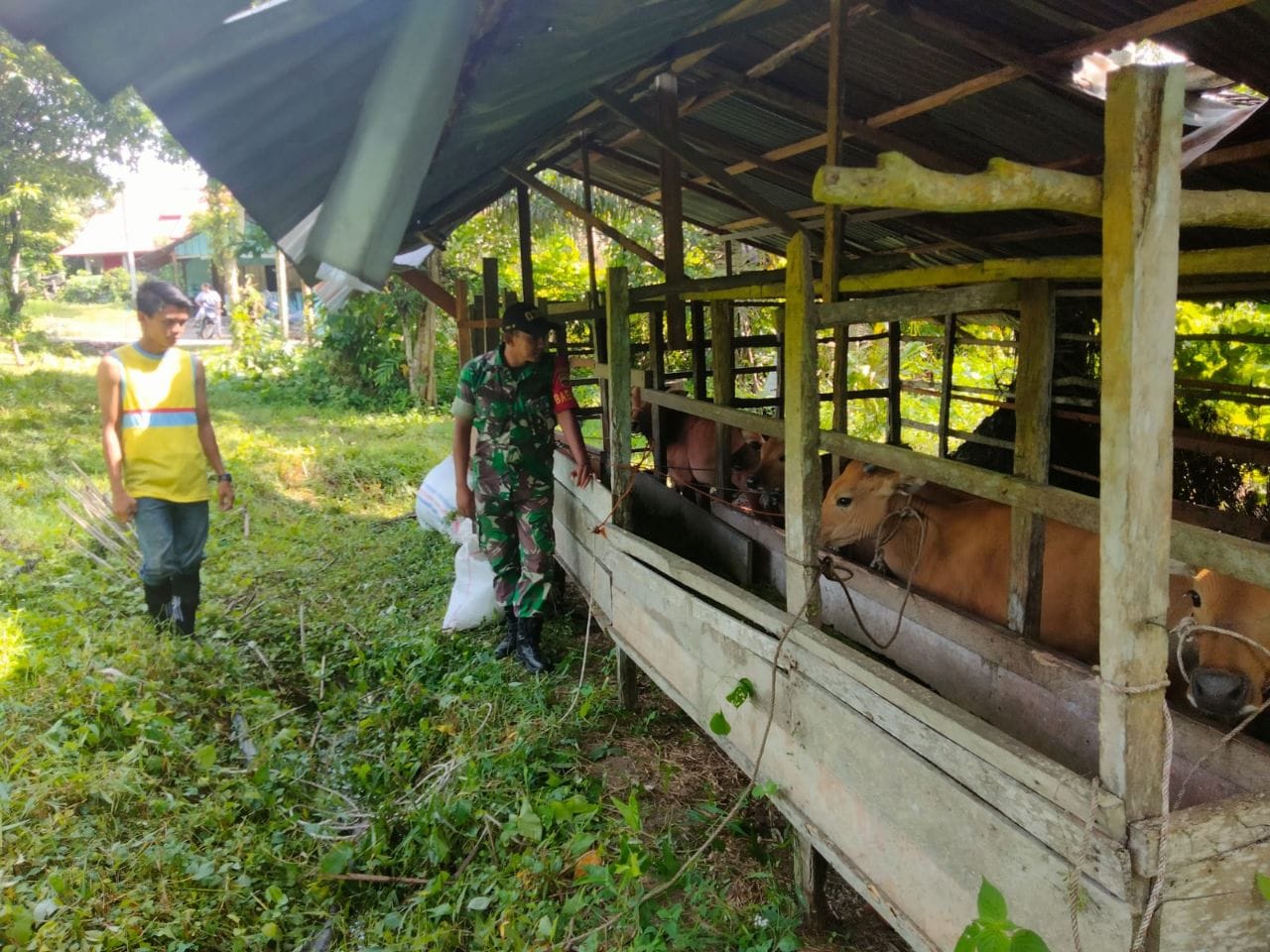 Terkait Wabah Pmk,Babinsa Koramil 08/KM Pantau Dan Cek Kesehatan Ternak Milik Warga