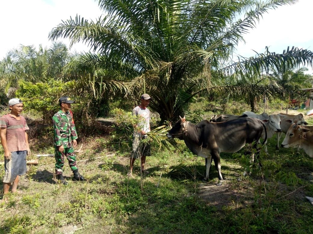 Babinsa Koramil 08/KM Kodim 0302/Inhu Sertu Gusman melaksanakan pemantauan sekaligus lakukan pengecekan kesehatan ternak sapi milik warga desa binaan yang berlokasi Di Desa Sangau Kecamatan kuantan mudik Kabupaten Kuantan Singingi. Selasa ( 09/12/2025 ).
