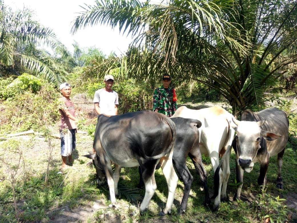 Babinsa Koramil 08/KM Kodim 0302/Inhu Sertu Nopin melaksanakan pemantauan sekaligus lakukan pengecekan kesehatan ternak sapi milik warga desa binaan yang berlokasi Di Desa Banjar Guntung Kecamatan kuantan mudik Kabupaten Kuantan Singingi. Senin (09/03/2026).