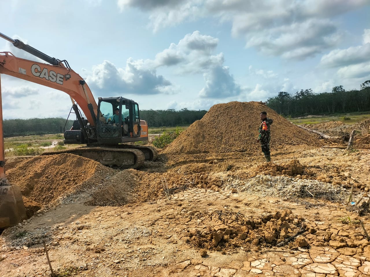 Dalam pemantauan lokasi proyek petugas TNI terlihat memastikan progres kerja berjalan sesuai rencana. Alat berat jenis ekskavator digunakan untuk mengatasi medan yang berpasir dan terdapat genangan air, dengan tujuan menciptakan akses jalan yang rata dan dapat digunakan oleh masyarakat kapan saja.