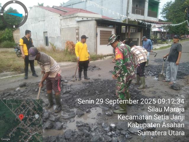 Dengan melaksanakan kegiatan Marharoan Bolon (Gotong-royong) penimbunan badan jalan yang berlobang tersebut untuk jalan penghubung tersebut, dalam pelaksanaan kegiatan Gotong royong menimbun jalan yang berlubang bersama dengan warga masyarakat binaan, dalam kesempatan ini seperti yang dilakukan oleh Personel Bintara Pembina Desa (Babisna) Koramil 13/Buntu Pane jajaran Kodim 0208/Asahan Koptu Siryanto turun kewilayah binaan untuk melaskanakan kegiatan gotong royong bersama masyarakat desa binaan, Gotong royong Pembersihan jalan kegiatan tersebut bertujuan tetap menjaga hubungan yang humanis, gotong royong bersama masyarakat memperbaiki jalan di dusun IV Desa Silau Maraja, agar akses warga menjadi lancar dan mudah dilalui, bersama dengan Bapak Haidir Butar-Butar (Kades Silau Maraja), Bripka Dedi Ismail (Babinkamtibmas), Bapak Pardomuan (Kadus) dan Warga Desa Silau Maraja, kegiatan tersebut yang dilaksanakan bertempat di Dusun IV Desa Silau Maraja Kecamatan Setia Janji Kabupaten Asahan, Senin (29/09/2025).