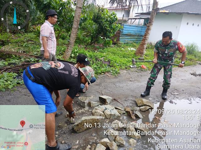 Dengan melaksanakan kegiatan Marharoan Bolon (Gotong-royong) penimbunan badan jalan yang berlobang tersebut untuk jalan penghubung tersebut, dalam pelaksanaan kegiatan Gotong royong menimbun jalan yang berlubang bersama dengan warga masyarakat binaan, dalam kesempatan ini seperti yang dilakukan oleh Personel Bintara Pembina Desa (Babisna) Koramil 14/Bandar Pasir Mandoge jajaran Kodim 0208/Asahan Pelda Junaidi turun kewilayah binaan untuk melaskanakan kegiatan gotong royong bersama masyarakat desa binaan, kegiatan gotong royong memperbaiki jalan bersama Warga. Kegiatan tersebut bertujuan untuk menjalin kerjasama yang baik antara Warga dan Babinsa sehingga TNI selalu di hati Rakyat dan dapat menunjang tugas-tugas Pokok TNI kedepannya dalam penerapan 8 wajib TNI, bersama dengan Bapak Yetno, Bapak Rahardi dan Bapak Suhardi, kegiatan tersebut yang dilaksanakan bertempat di Dusun II Desa Bandar Pasir Mandoge Kecamatan Bandar Pasir Mandoge Kabupaten Asahan, Jumat (12/09/2025).