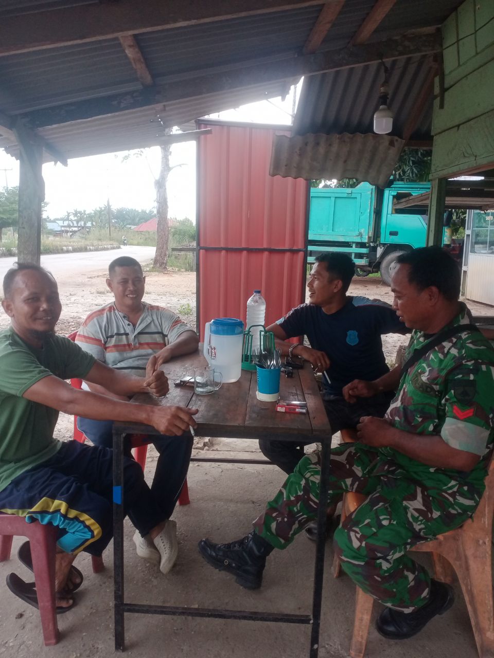 Keakraban tersebut dilihatkan saat warga dan babinsa sedang melakukan bincang Santai di desa Pulau Banjar Kari.