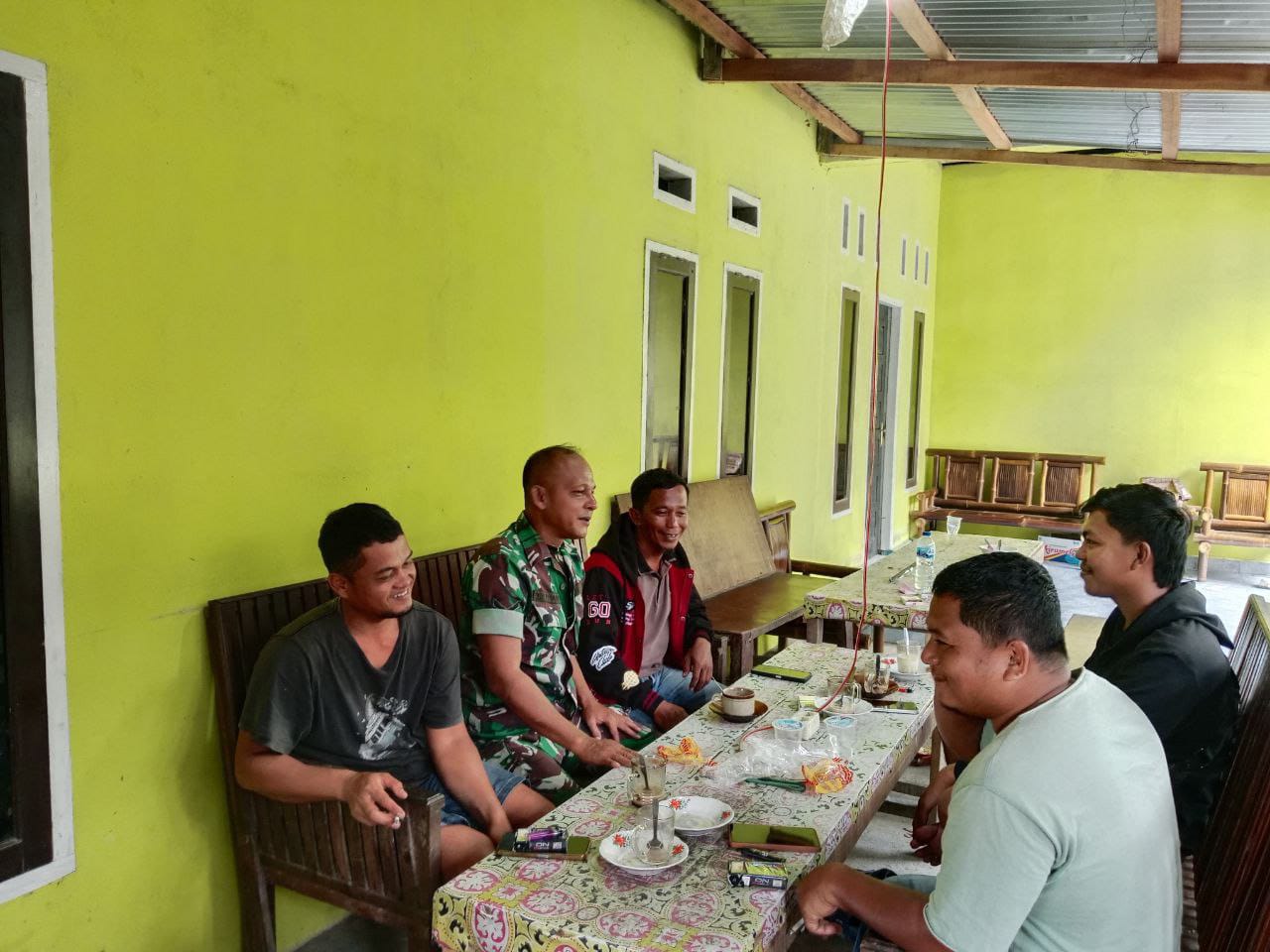 Keakraban tersebut dilihatkan saat warga dan babinsa sedang melakukan bincang Santai di desa Banjar Benai.