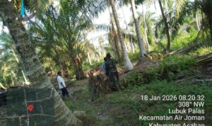 Teluk Kuantan – Bintara Pembina Desa (Babinsa) Koramil 02/Kuantan Tengah Serda Sunariadi bersama Anggota Lainnya melaksanakan Patroli Kebakaran Hutan dan Lahan (Karhutla) di desa Talontam Benai Kec. Benai Kab. Kuansing, Sabtu (24/01/2026).