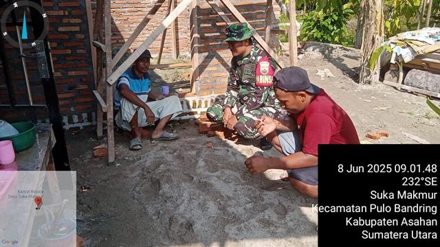 Asahan  |  Hubungan baik antara TNI dan rakyat perlu dijaga secara berkesinambungan agar persatuan dan kesatuan bangsa dapat terjaga. Hal tersebut pula yang dipedomani oleh prajurit Kodim 0208/Asahan sebagai satuan territorial, dalam kesempatan tersebut seperti yang dilakukan oleh Personel Bintara Pembina Desa (Babinsa) Koramil 18/Meranti jajaran Kodim 0208/Asahan Serda Blego Surodiharjo turun kewilayah binaan untuk melaksanakan kegiatan Komunikasi Sosial (Komsos) dengan masyarakat Desa Binaan sehingga terjalin tali silaturahmi dan hubungan Komunikasi yang baik dan Harmonis antara Babinsa dengan warga Binaan guna tercapai tugas pokok Babinsa secara maksimal, kegiatan Komsos bersama dengan warga untuk bersilahturahmi mendatangi warga berbincang tentang keamanan yg akhir2 ini kurang kondusif di desa berharap dengan kedatangan Babinsa dapat membantu masyarakat menangani keamanan yang berada di desa dan bermanfaat membantu masyarakat desa binaanya, bersama dengan Saudara Parmen (warga Dusun Vll) dan Bapak Rusli (warga Dusun VlI), kegiatan tersebut yang dilaksanakan bertempat di Desa Sukamakmur Kecamatan Pulo Bandring Kabupaten Asahan, Senin (09/06/2025).